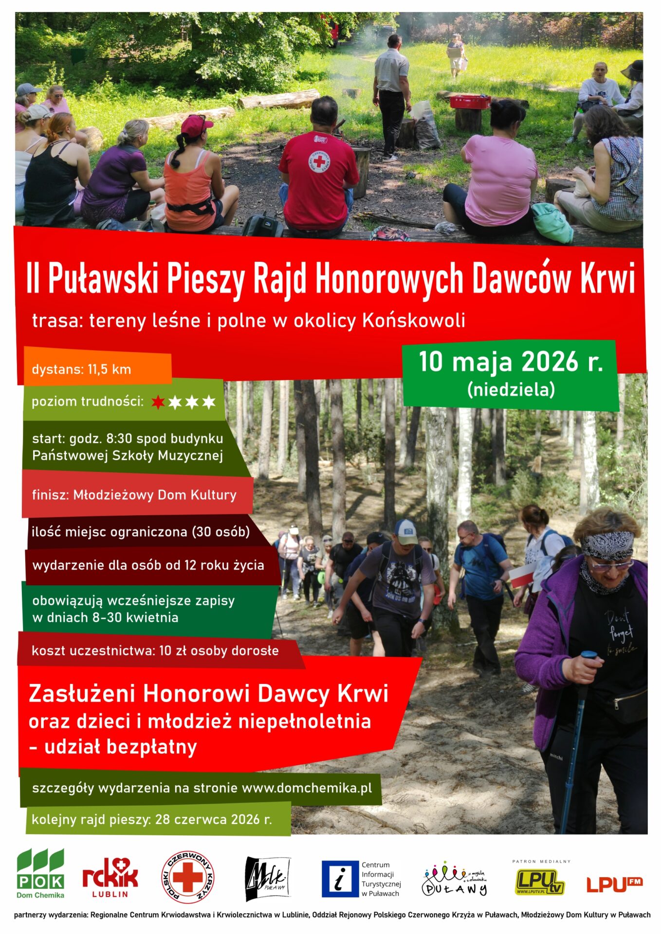 Zachęcamy do uczestnictwa w rajdzie oraz do honorowego oddawania krwi w RCKiK w Lublinie oraz naszym puławskim Oddziale Terenowym RCKiK.
