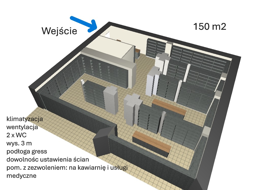 Obecnie znajdują się tam biura Możliwość zmian aranżacji ścian Lokal opomiarowany, energooszczędne oświetlenie Led, centralne ogrzewanie, podłoga gres, toaleta x 2 Lokal klimatyzowany z wentylacją mechaniczną